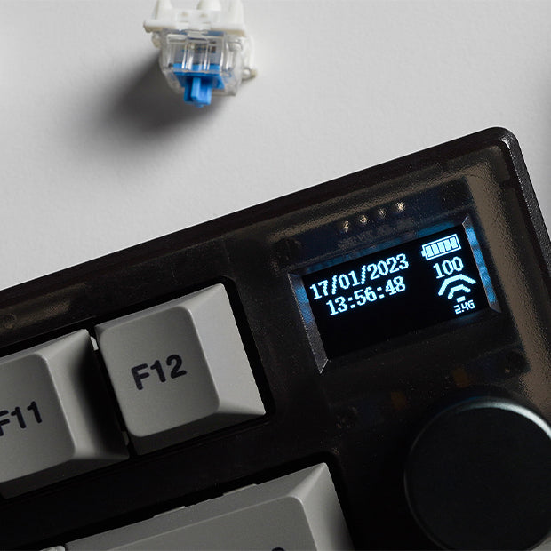 Apply custom GIFs, PNGs, artwork and more! MAXFIT81 Frost Wireless can also display PC information, keyboard status, time, battery status and more, all on the crystal clear 1 inch OLED screen.